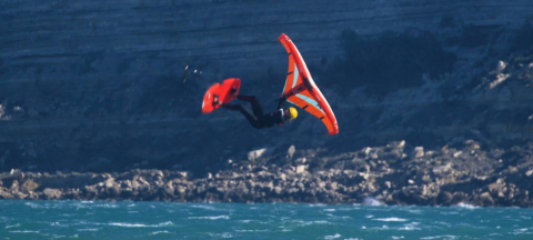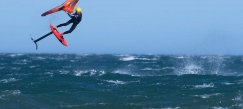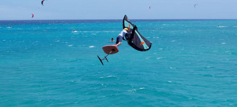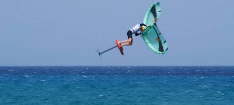 Chris Macdonald shows the backflip into frontside 360, a combo trick in wing foiling...