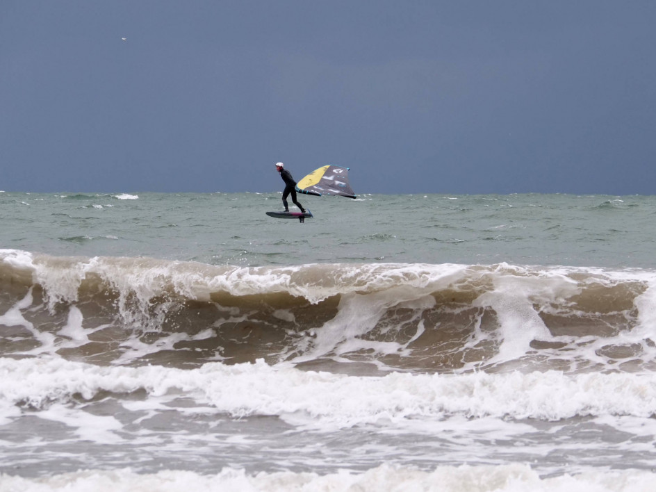 Und der nächste windige Tag, heute gab es allerdings eher böiges Schauerwetter. Für Wings von 5.2 bis 4.0 hat es gereicht, zwischenzeitlich aber nur mit heftigem Pumpen, um ins Fliegen zu kommen.