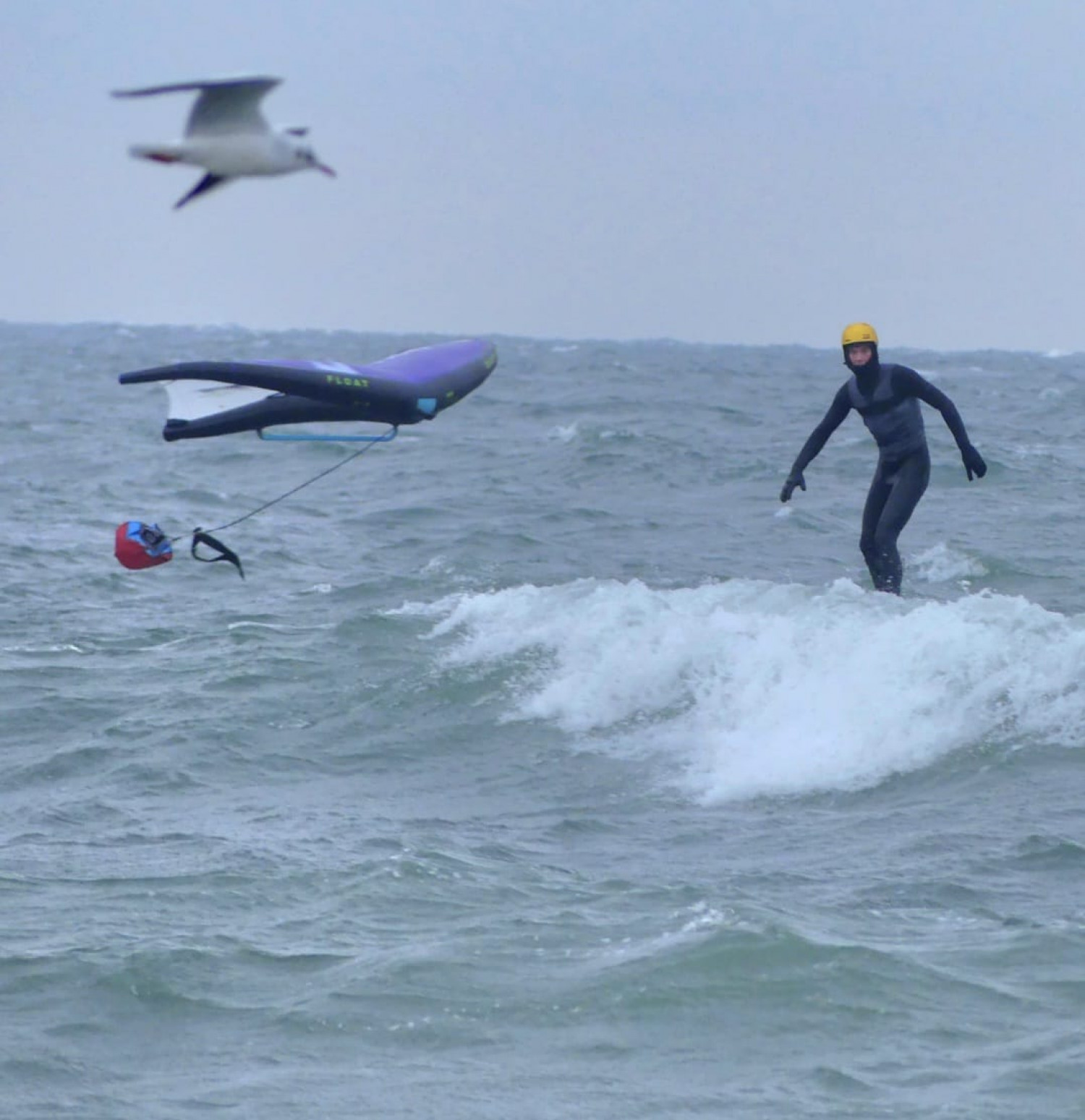 Achtung: Wing-Dropper am Start. Ohne Wing kann man ungestörter Foilen, muss aber manchmal lange schwimmen - an diesem Tag bei unter 0 Grad 🥶