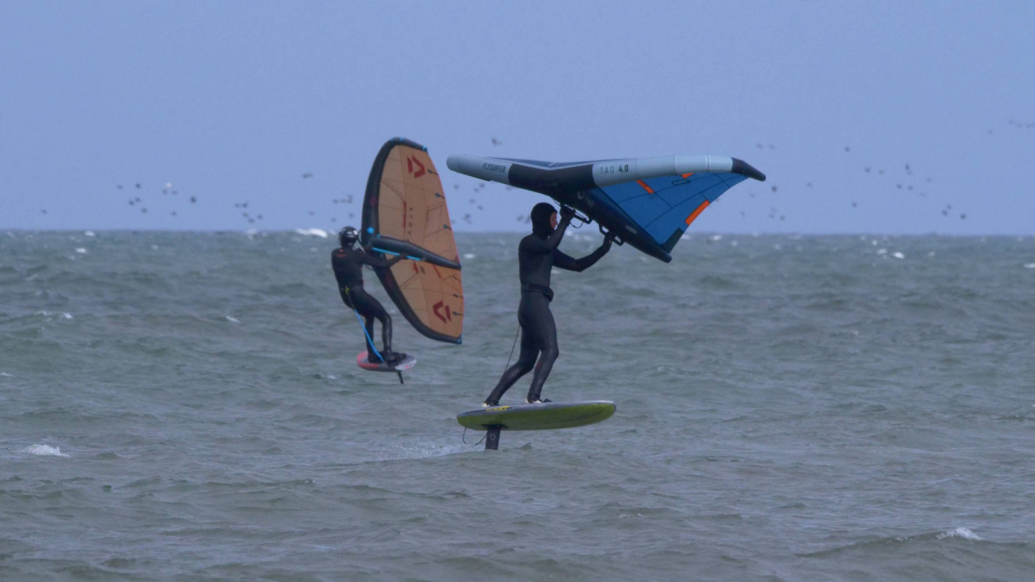Mit 4er Wing kam man am Steinwarder Strand gut ins Fahren und die Wellen waren hüfthoch. Sonne und nur 5°C Luft, aber die kleinen Wellen vor der Sandbank konnte man gut abreiten.