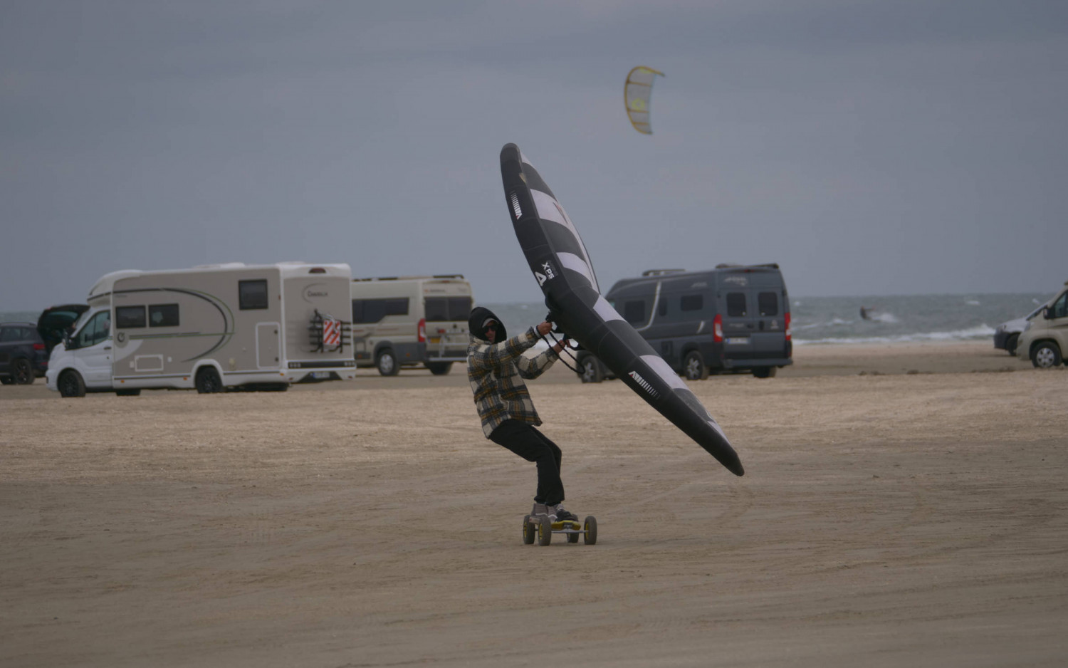 Wingen am Strand. Weicher Sand und starker Wind, dieser Tag war nicht optimal fürs Rollen mit Wing und Landboard über...