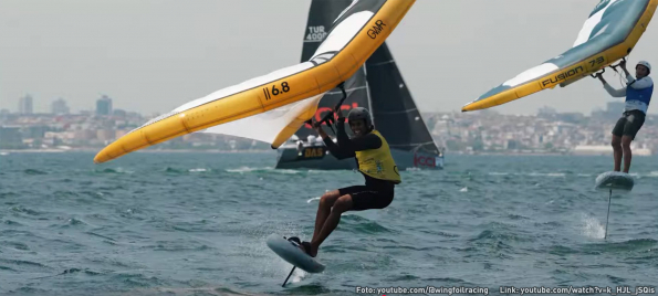 Foil Surfing am Diamond Head auf Oahu. Edo Tanas nutzt die Dünung weiter draußen, um konstant im Foilen zu bleiben. Kein Problem bei kraftvollem Pazifikswell und Edos Routine als erfolgreicher Long Distance Downwind Foiler.