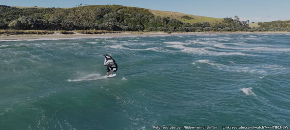 Drone Shots von Angus Butterfield, Wingfoilen in Neuseeland am wirklich traumhaften Shakespear Beach im Shakespear...
