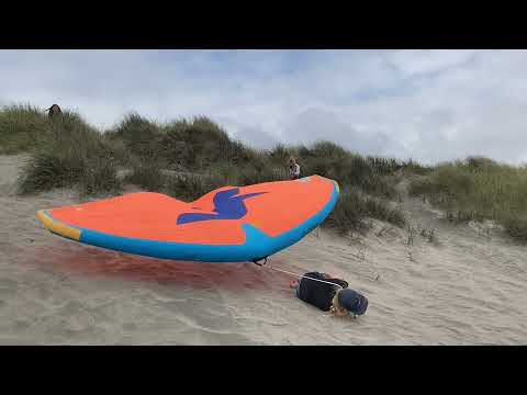 Auf den Spuren des Ikarus - der Traum vom Fliegen. Ein Helm wäre eine gute Investition, besonders bei weiten Sprüngen bis ins Flat vor den Dünen. Die Aktion an der Oregon Coast (USA) im Sommer 2021 diente übrigens einem guten Zweck, Spenden für 'Kiteboard 4 Cancer' (KB4C.org) wurden gesammelt.