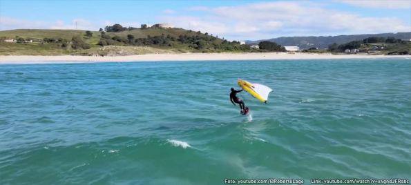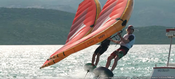 Regattatraining - der kleine Kacper Kiekrz aus Polen düst über den See. Der 11-Jährige ist fit im Wingfoilen und sonst auch schon mit Windsurfboard unterwegs.