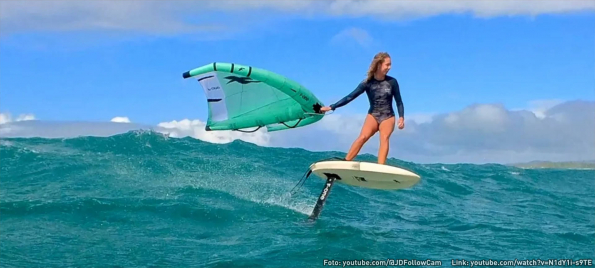 Wingfoilen auf der Nordinsel von Neuseeland. FPV Drone Shots aus der Manu Bay bei Raglan.