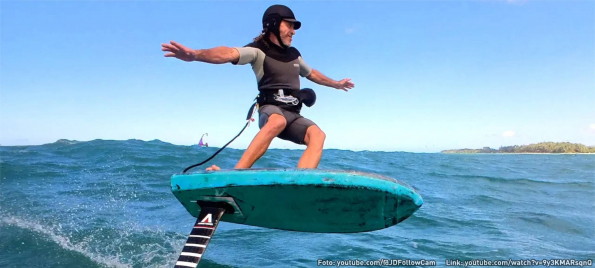 Chris Macdonald beim Wingen an der Hatch (Columbia River). Da kam die Idee auf, ob man beim SUP-Foilen nicht auch einen Besen anstatt eines Paddels nehmen könnte.