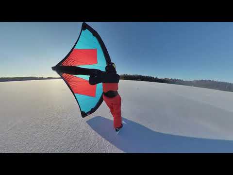 Scharfe Kufen aus Edelstahl liefern den Griff, um mit Wing und Schlittschuhen oder Eissurfboard und Windsurfsegel über das gefrorene Gewässer zu brettern. Ein Clip aus Finnland.
