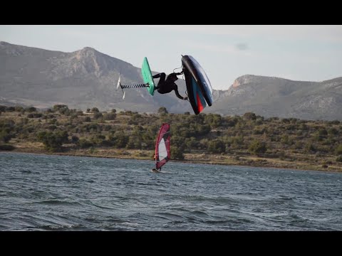 Wingfoil Action aus Griechenland. Jimis Sot war vor den Toren von Athen auf dem Wasser.