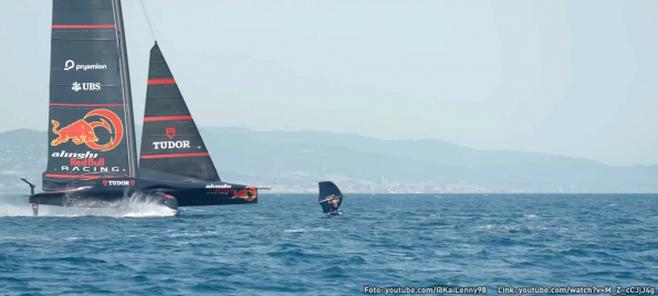 Wingfoilen auf Schiffswelle