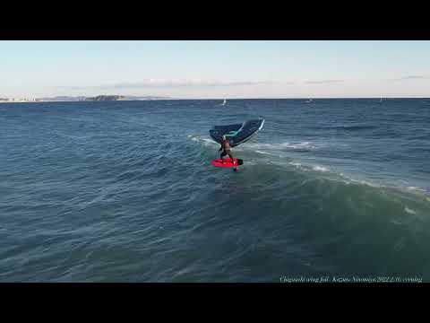 Auf dem Wasser vor der japanischen Hauptstadt Tokio - Wingen am Strand des Chigasaki-Parks, perfekt eingefangen mit einer Drohne.
