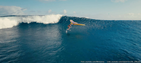 Pete Cabrinha, Ken Adgate und andere Rider beim Wingen und Parawingen am North Shore von Maui. Cynthia zeigt eine pfiffige Mehtode zum Verstauen des Parawings.