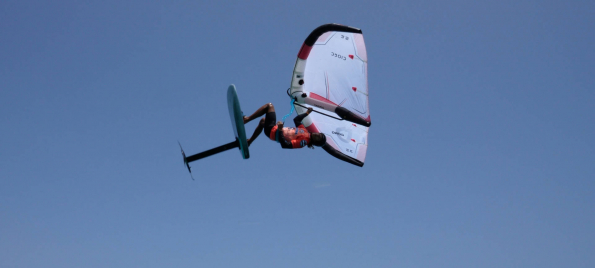 In einem der vorherigen Fahrtechnikvideos hatten wir euch die Halse mit flacher Wingführung gezeigt, bei der der Wing maximal neutral (wie ein Regenschirm = Umbrella-Position) über dem Kopf gehalten wird.