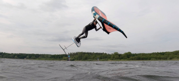 Im Prinzip wie ein Backside Aerial, den man beim Wingfoilen auch auf Flachwasser springen kann. Und auch ein gutes Training für den Raley, bei dem dieser Bewegungsablauf wesentlich extremer ausgeführt wird.