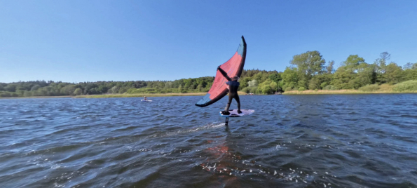 Der Druck im Wing nimmt dabei ab, so dass man das Flügelende leicht durch den Wind auf die andere Seite drücken kann. Und schon steht man in normaler Stellung und Winghaltung auf dem Board und kann den Turn einfach zu Ende foilen.