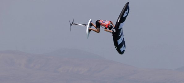 The front flip is a forward rotation when wingfoiling. The rotation takes place over the horizontal axis of the wing (over the strut) and not around the front of the wing.