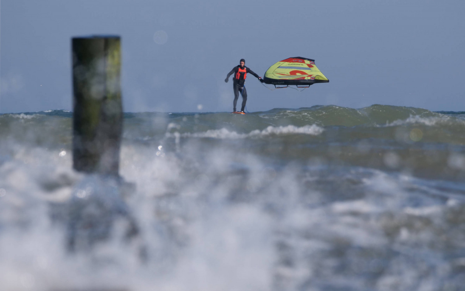 In der Lübecker Bucht kam der Ostwind gestern nicht ganz so stark durch wie vorhergessagt, aber für Wings bis runter zum 3.5er hat es gereicht (3.5er bis 5.0er waren auf dem Wasser). Bei mir passte der Vierer perfekt. Seegras war nur unter Land unterwegs, draußen warteten kabbelige Dünungswellen.