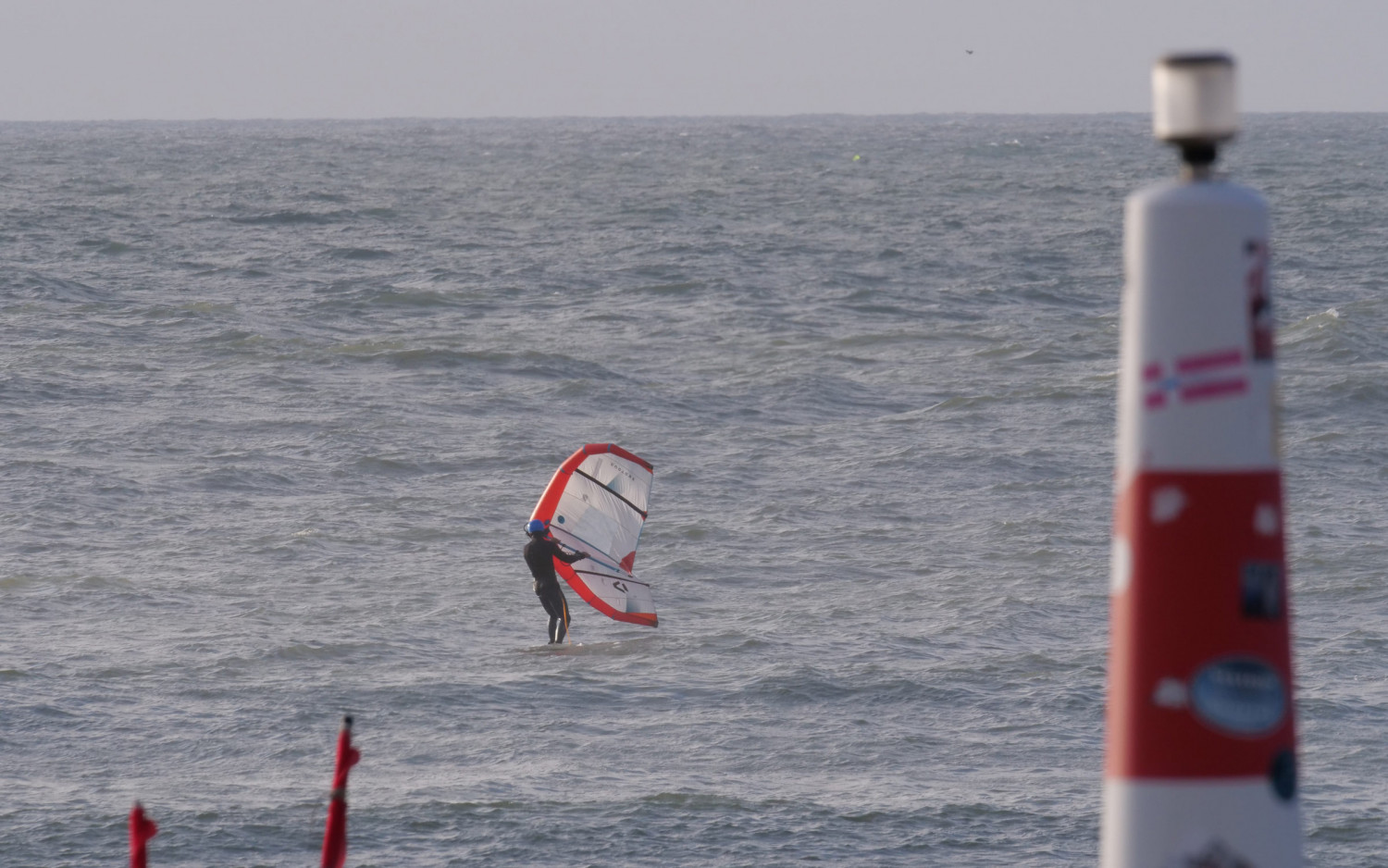 Leichter Wind aus Südwest, Wingen im Abendlicht in der Bucht vor Klitmøller im Nordwesten Dänemarks.