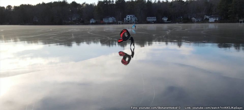 Eiszeit. Ritt auf Eis mit 360° Cam am langen Trapezausleger. Der Speedrausch mit Wing und Schlittschuhen sieht im...