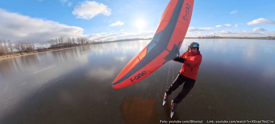 Eiszeit. Ritt auf Eis mit 360° Cam am langen Trapezausleger. Der Speedrausch mit Wing und Schlittschuhen sieht im...