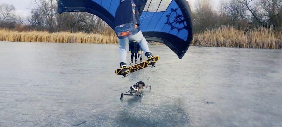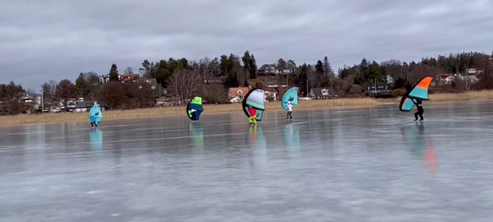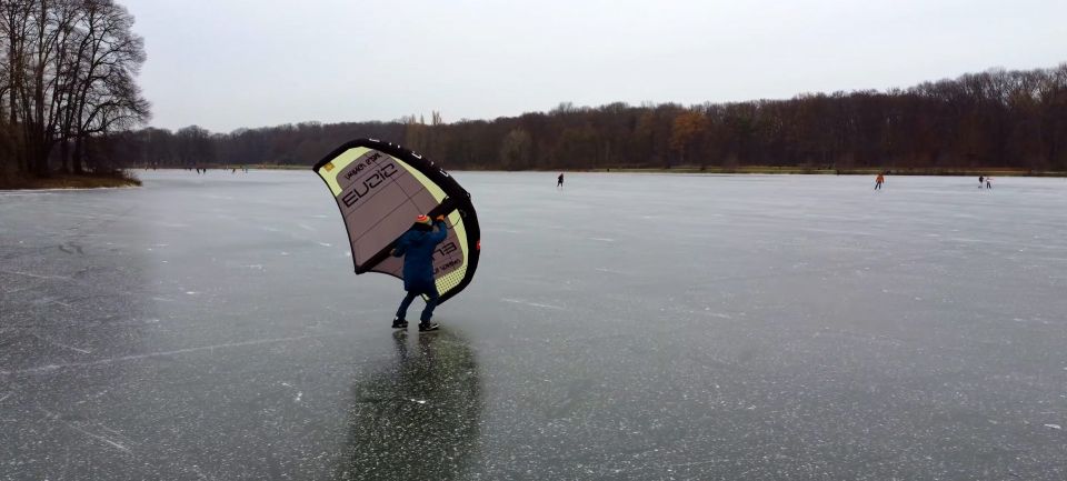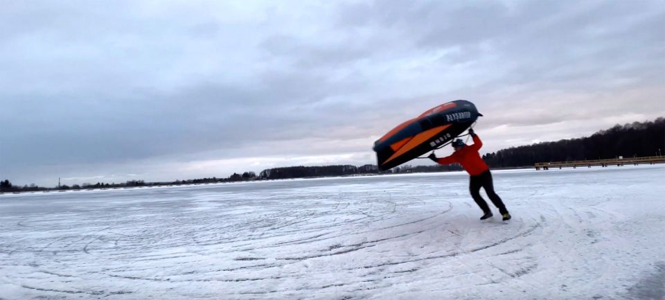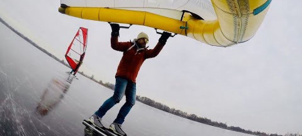 Wingfoil Iceskating. Turns carven mit Schlittschuhen und Wing. Ein Video vom zugefrorenen Zalew See bei Zamość im...