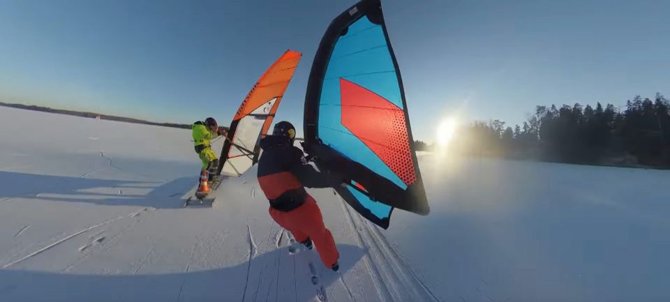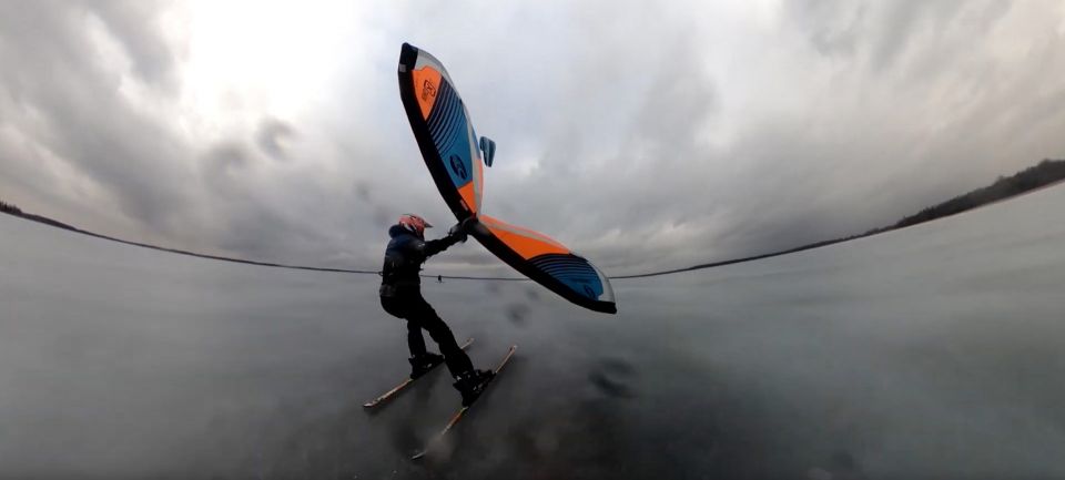 Wing Ice Skiing. Mit Skiern und Wing aufs Eis. Eine Wing Session in Rekyva/Litauen vom 20. Februar 2022. Die scharfen...