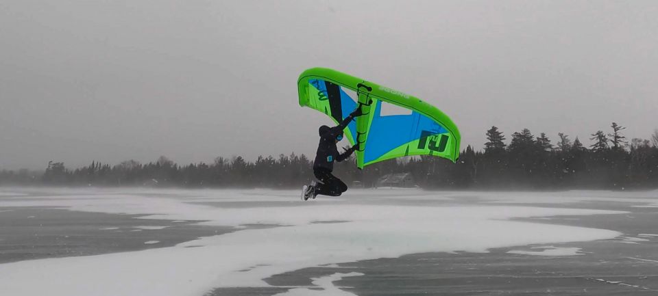 Wing- und Windsurfen auf Eis. Scharfe Kufen aus Edelstahl liefern den Griff, um mit Wing und Schlittschuhen oder...