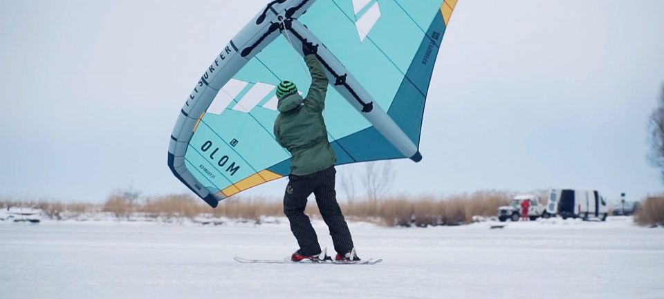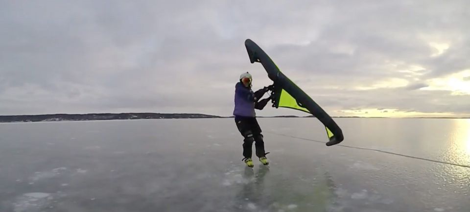 Mit Wing und Ski auf den zugefrorenen Greifswalder Bodden. Das funktioniert erstaunlich gut, wie Fotos und das Video...