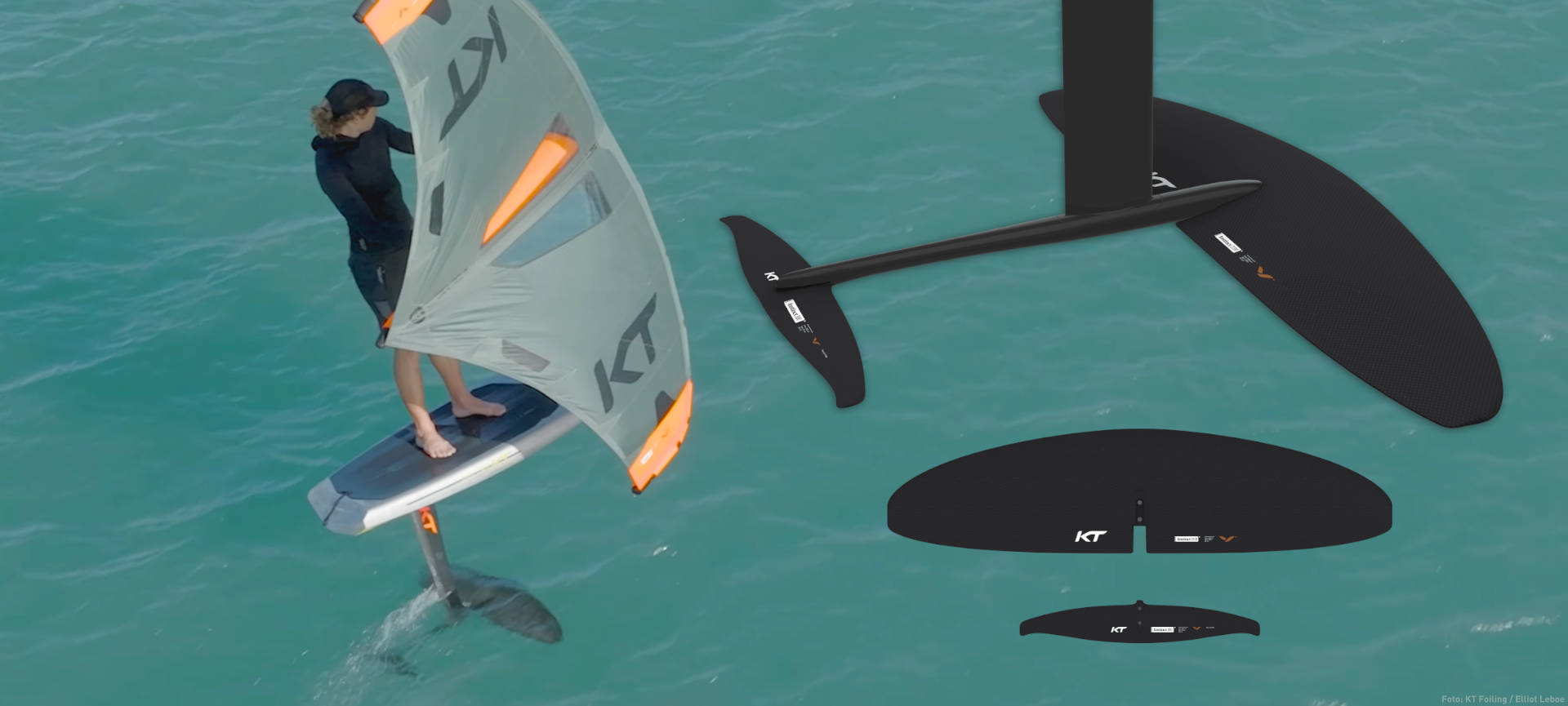 KT ergänzt die Linie der Instinct Foils um einen einsteigertauglichen Frontwing. Mit 2200 cm2 Fläche soll der Frontflügel die ersten Fahrten auf dem Foil zum Kinderspiel machen.