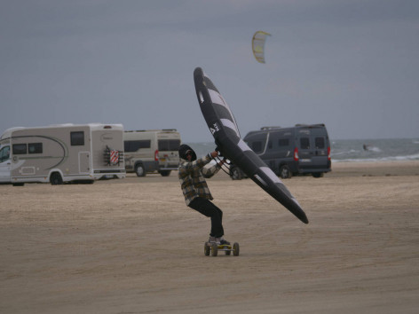 Mountainboarden am Strand. Spaß auf Sand - Mountainboarden mit Wing an den Stränden der Île d'Oléron. Fast 10...