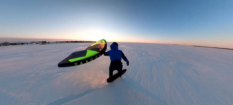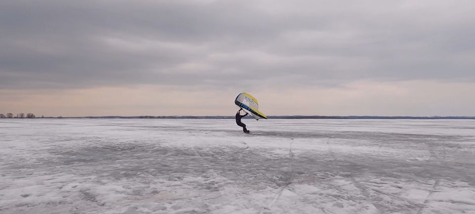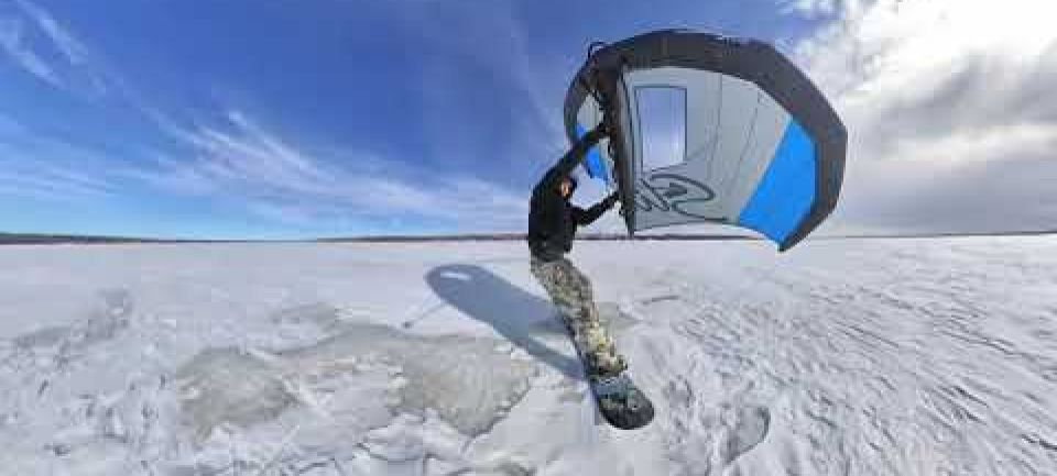 Snow Winging. Zugefrorener See, ordentlich Schnee drauf und einen windigen Tag abwarten. Das funktioniert in Kanada...