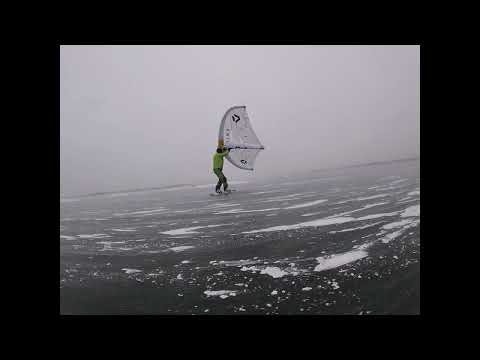 Einen etwas zu windigen Tag hat Piotr sich da ausgesucht. Der Wintersturm pusht ihn übers Eis, nicht nur mit Schlittschuhen und Snowboard, Piotr ist der Erfinder des Butt & Knee Wingens ;-)