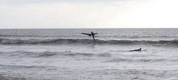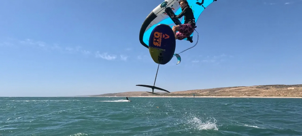 Żnin im Winter, das Gewässer vor der polnischen Stadt war gefroren. Wings + Schlittschuhe und Windsurfsegel auf Eissurfboards wurden genutzt, um über den See zu rutschen.