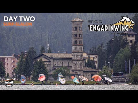 Am zweiten Tag des Engadinwing stand Surf-Slalom in St. Moritz auf dem Programm. Sonne, Regen und Gewitter erschwerten den Ablauf der Rennen und so wurde nur eine Wertung bei den Männern und drei Rennrunden bei den Frauen ausgetragen. Camille Bouyer und Maaike Huvermann führen die jeweilige Wertung an.