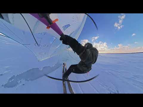 Bevor der Winter durch ist... ein Ausritt mit Ski und Wing aufs Eis in der Cook's Bay im Süden des Lake Simcoe in Ontario, Kanada.
