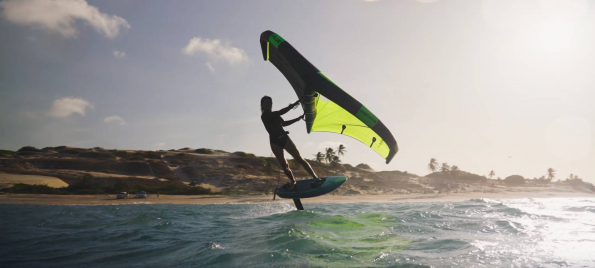 Leichter Wind im Sonnenuntergang, Tobias unterwegs mit 4.1er Wing auf dem Binnensee zwischen Table View und Sunset Beach.