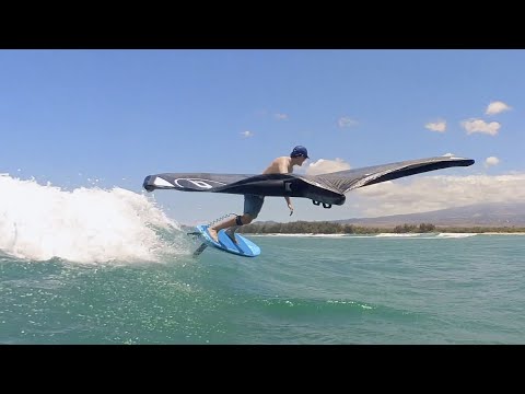 Lange und flache Wellen an Mauis North Shore, das ganze dann auch noch in Boardshorts - Hawaii ist ein Wingfoil Paradies.