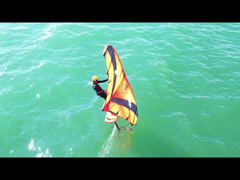 8 Knoten reichen Jérôme aus, um mit einem 6er Wing ins Fliegen zu kommen. Eine entspannte Session mit Miniswell. Leichtwind-Wassersport: Seitdem es Wingfoilen gibt ist Surfsport möglich, wo früher einfach nichts ging...