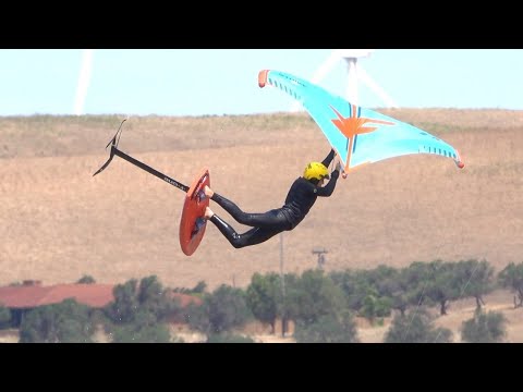 Wingfoilen östlich von San Francisco auf dem Sacramento River vor Sherman Island. Windig wars, Luca griff bei dieser Session zum 2,5er Wing.