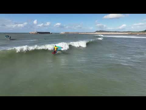 Auch an den Küsten Japans ist Wingfoilen angesagt. Hier seht ihr ein Video mit Luftaufnahmen an der Küste vor Fukuoka im Westen des Landes.
