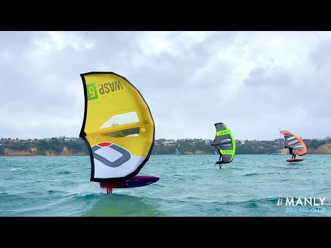 Wingfoilen nördlich von Auckland/Neuseeland. Dieses Video zeigt einen Regattatag des Manly Sailing Club, rund 20 Wingfoiler nahmen an den Rennen teil.
