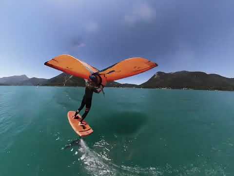 Summer Fun am Walchensee auf grünblauem Wasser. Ein Video mit Special Mounts am Wing, gefilmt mit einer 360-Grad-Kamera.