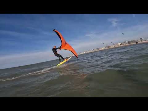 Die Kulisse an der belgischen Küste ist ziemlich urban - hohe Gebäude direkt am Strand. Hier wird vor Knokke-Heist gefoilt, eine Session aus Juli am Strand von Duinbergen.