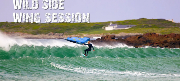 Düsteres Winterwetter hält Benoit Carpentier nicht vom Foilen ab. Vor der Session muss geklettert werden und auch der Einstieg erfolgt über Steine - Wingfoilen in der Bretagne.