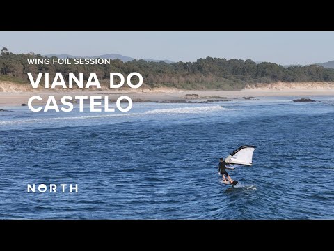 Morgens bei Sonnenaufgang aufs Wasser. Hier seht ihr einen Clip von Alvaro Bajo beim Wingfoilen südlich der Mole bei Viana do Castelo. Miguel Rueda steuerte die Drohne.