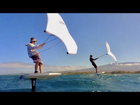 Das erinnert etwas ans Drachen steigen lassen - die Drexler Bro's beim Wingfoilen auf Maui. Schön, dass es mit Wings auch an der langen Leine funktioniert, aber dafür gibt es Kites.